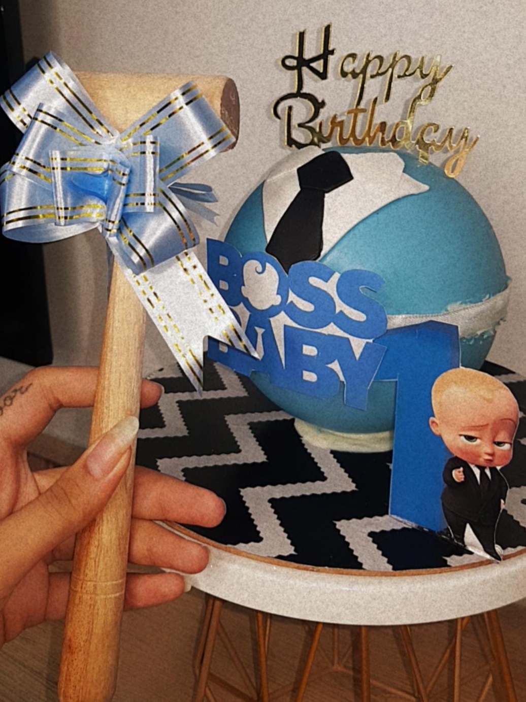 + Free ShippingFun Boss Baby-themed hammer cake perfect for a baby boy’s birthday celebration. Comes with a wooden hammer to crack the cake shell!